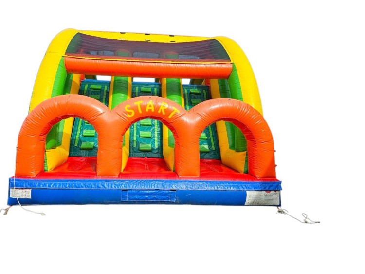 The Dry 3 Lane Racing Slide is an exciting rental piece that turns any event into a racing adventure. Designed with three distinct lanes, it offers kids the thrill of competition as they slide side-by-side, creating an atmosphere of fun, laughter, and friendly rivalry. Whether for a birthday party, school event, or community gathering, it's a versatile item sure to bring smile after smile.